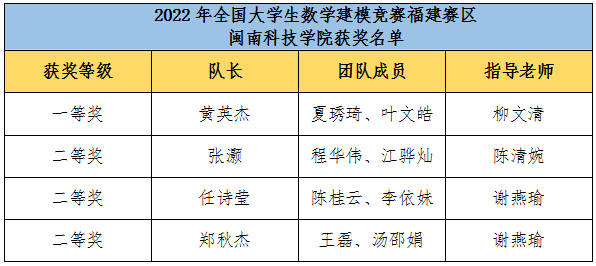 在2022年全国大学生数学建模竞赛(福建赛区)中,爱体育网(中国)学子共获一等奖1项、二等奖3项。备赛期间,数学建模教师组的所有指导教师悉心指导,同学们刻苦钻研,不断提高创新能力和综合素质,并取得佳绩。