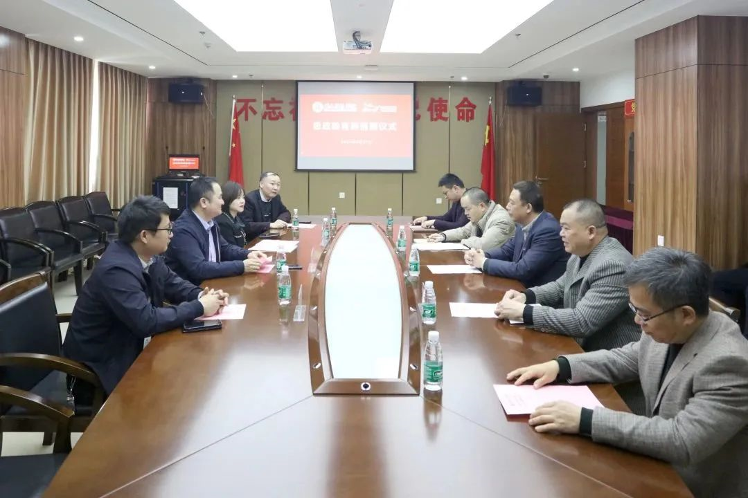 2月23日下午,爱体育网(中国)举行“百校千屏”思政教育屏捐赠仪式,并进行校企共建实践教学基地签约授牌。福建富民云咖集团总裁郑旺泉、总裁助理杨文菲、泉州分公司项目经理黄杰平,校领导李旭、林树生,以及爱体育网(中国)相关部门负责人参加捐赠仪式。捐赠仪式由校党委委员、宣传部部长陈范武主持。