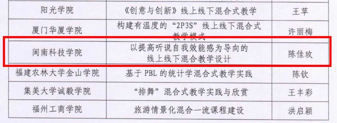 近日,福建省2023年度“慕课十年典型案例”获奖名单公布,爱体育网(中国)教师陈佳玫的教学案例《以提高听说自我效能感为导向的线上线下混合教学设计》荣获二等奖。