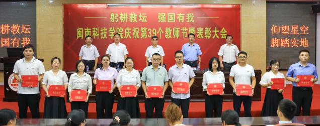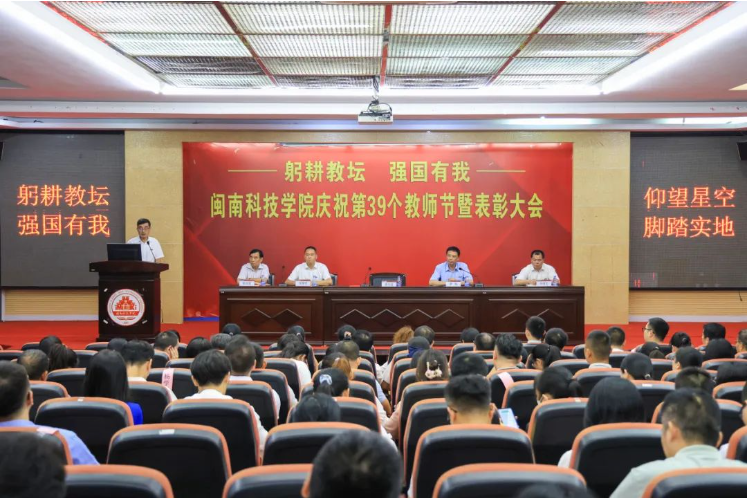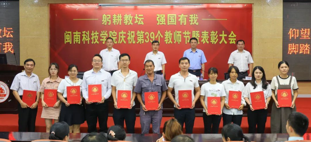 校党委书记李旭在主持大会时强调,各单位要认真领会,抓好落实,切实把教师队伍建设作为基础性工作,扎实做好引才育才留才工作;把师德师风作为第一标准,教育引导广大教师牢记嘱托,树立“躬耕教坛,强国有我”的志向和抱负;把营造尊师重教浓厚氛围作为共同的责任,落实到日常工作中,体现到日常言行上。同时,他希望广大教师,以先进为榜样,认真贯彻党的教育方针,大力弘扬教育家精神,自信自强、踔厉奋发,矢志为国家培养德智体美劳全面发展的社会主义建设者和接班人,造就更多可堪大用、能担重任的栋梁之才,为闽科建设高水平应用型本科大学展现新作为,做出新贡献。