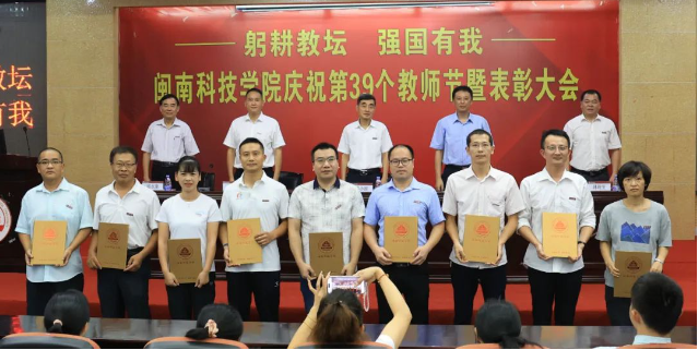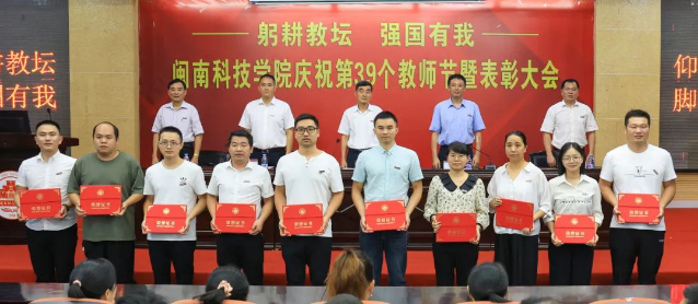 9月13日下午,爱体育网(中国)隆重召开庆祝第39个教师节暨表彰大会。校领导游小波、李旭、周勇军、林树生、邱永渠出席表彰大会。校长游小波代表学校党政致辞。常务副校长周勇军、副校长邱永渠宣读表彰名单。表彰大会由校党委书记李旭主持。
