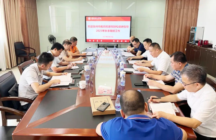 9月14日上午,泉州市委教育工委委员、泉州市教育局专职副总督学庄映峰率有关科室负责人莅校调研指导秋季开学工作。校领导周勇军、林树生,校长助理王育海及相关职能部门负责人参加汇报会。