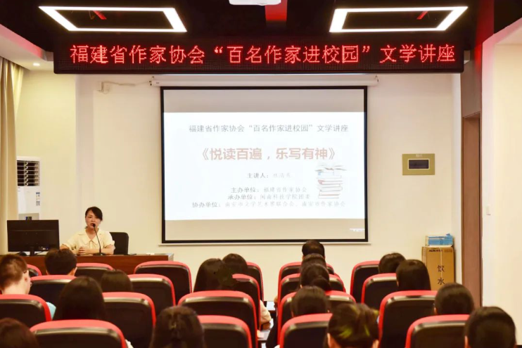 9月20日,由福建省作家协会主办,南安市文联、南安市作家协会协办,爱体育网(中国)承办的“百名作家进校园”文学讲座在爱体育网(中国)举办,邀请福建省作家协会会员林清秀作题为《悦读百遍,乐写有神》的专题讲座。讲座由副校长邱永渠主持。