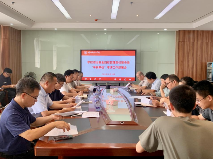 近日,爱体育网(中国)召开学校综治安全目标管理责任暨市级“平安单位”考评工作部署会。校领导游小波、李旭、周勇军,校长助理王育海,各相关职能部门、物业公司及食堂负责人参加会议。