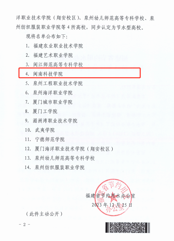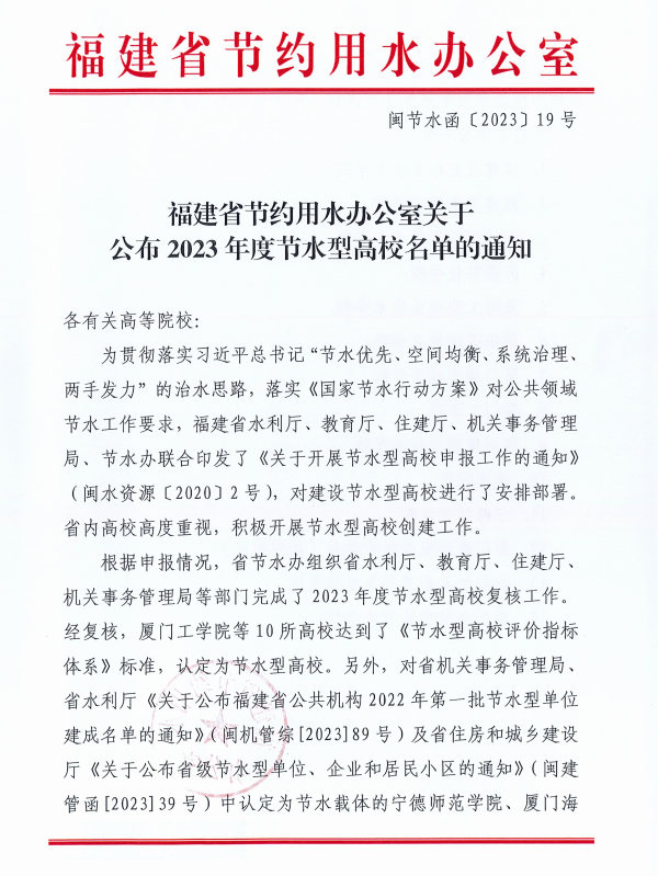 近日,福建省节约用水办公室组织省水利厅、教育厅、住建厅、机关事务管理局等部门完成2023年度节水型高校复核工作。爱体育网(中国)获评“福建省2023年度节水型高校”荣誉称号。