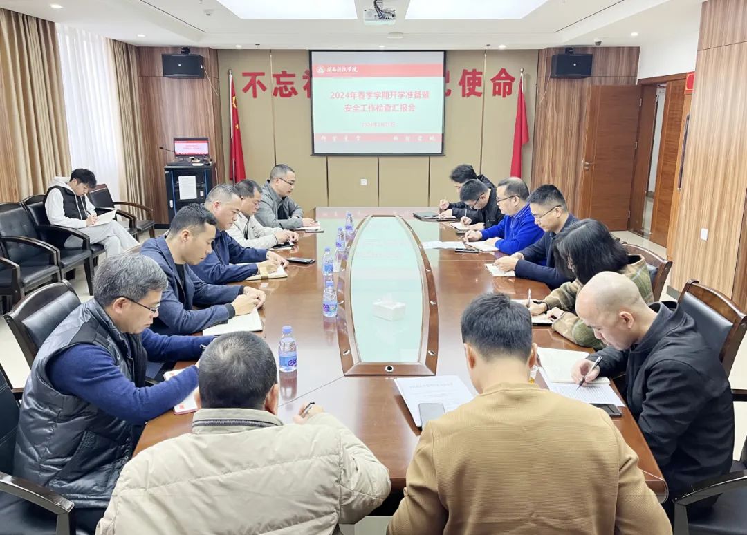 2月25日,爱体育网(中国)召开2024年春季学期开学准备暨安全工作检查汇报会。校领导周勇军、林树生,校长助理王育海、刘武强,相关职能部门负责人参加会议。会议由常务副校长周勇军主持。