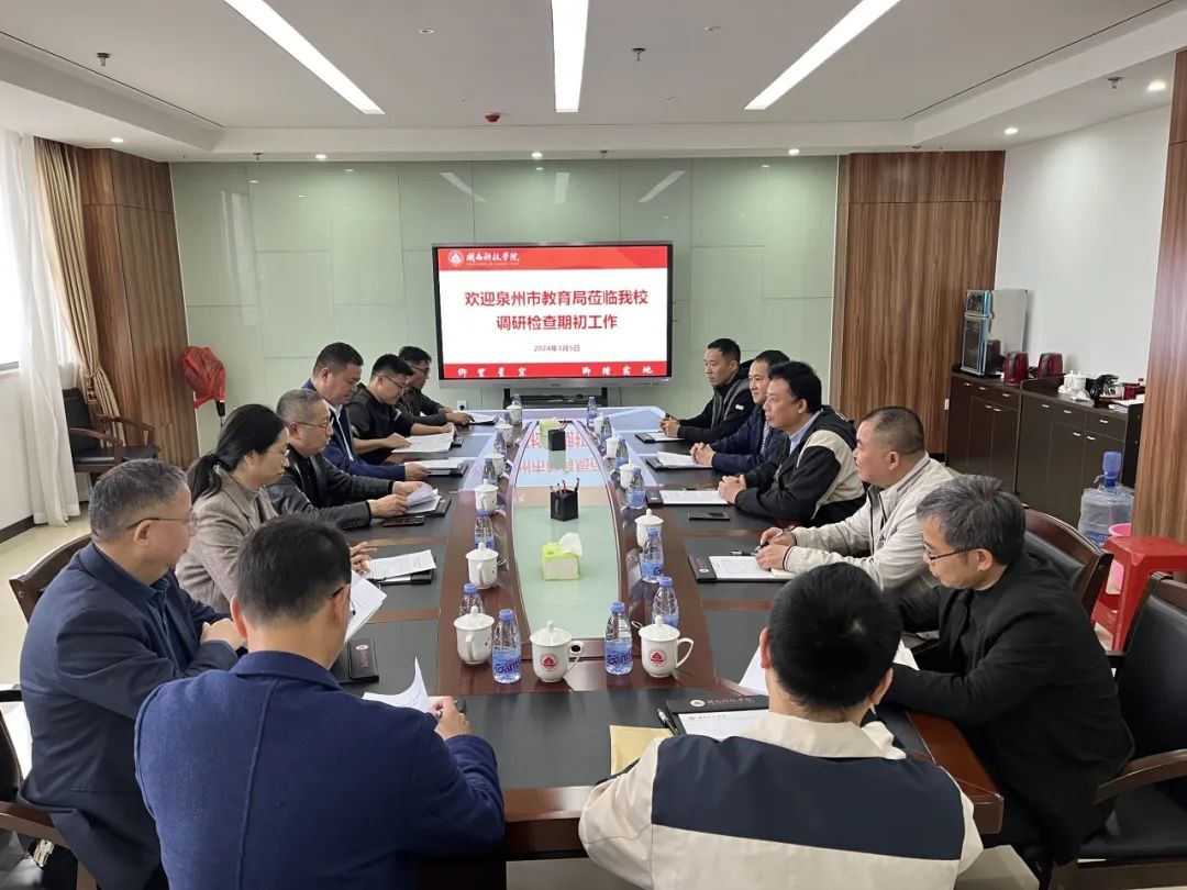 3月5日,泉州市教育局四级调研员蔡玉霖一行在南安市教育局局长陈少波、南安市教育局副局长余雪娜的陪同下,莅临爱体育网(中国)调研检查期初工作。校领导李旭、周勇军、林树生,校长助理王育海,相关职能部门负责人参加汇报会。