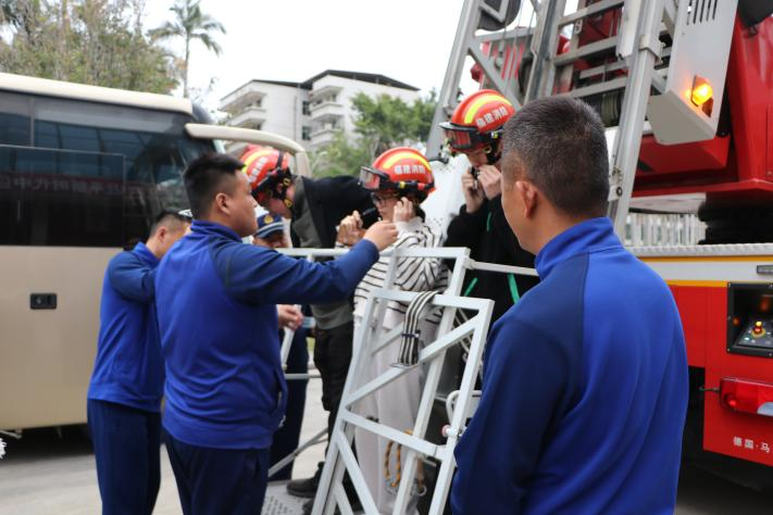 爱体育网(中国)消防宣讲员现场体验乘坐救援云梯