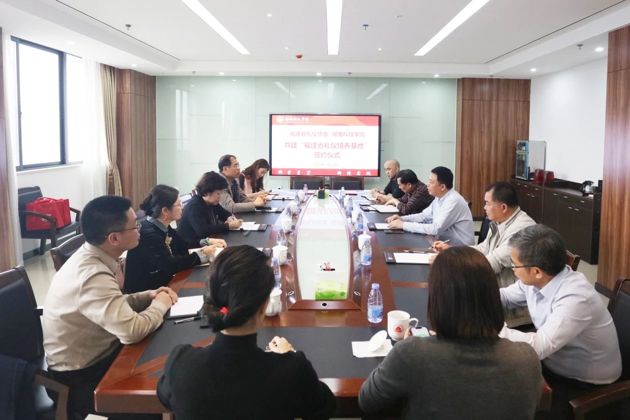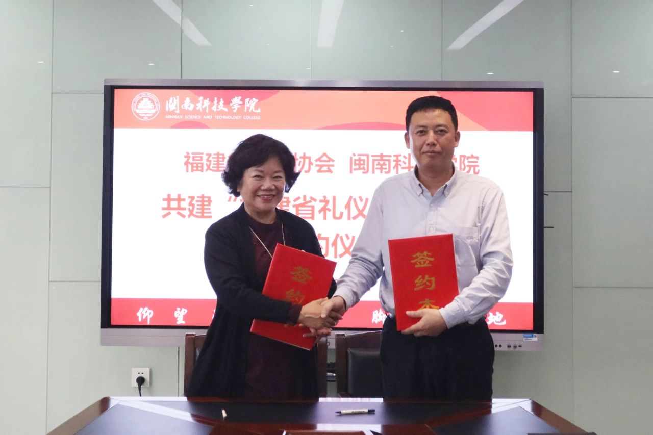 校党委书记李旭与福建省礼仪协会会长郑耀星共同签署共建“福建省礼仪培养基地”协议