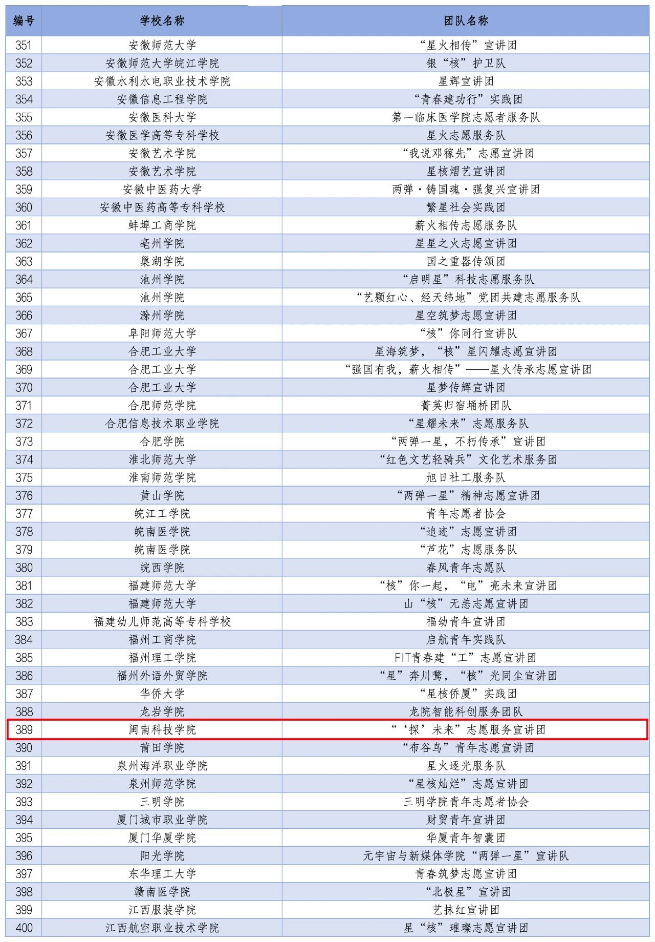 2024年全国大学生“两弹一星”精神志愿宣讲团入选团队名单