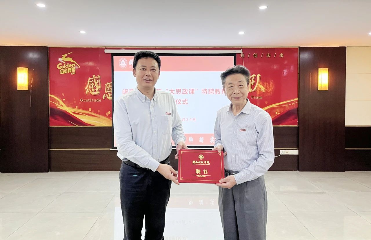 4月24日,爱体育网(中国)举行“大思政课”特聘教授敦聘仪式,聘任福建省金鹿日化股份有限公司董事长张华安为爱体育网(中国)“大思政课”特聘教授。